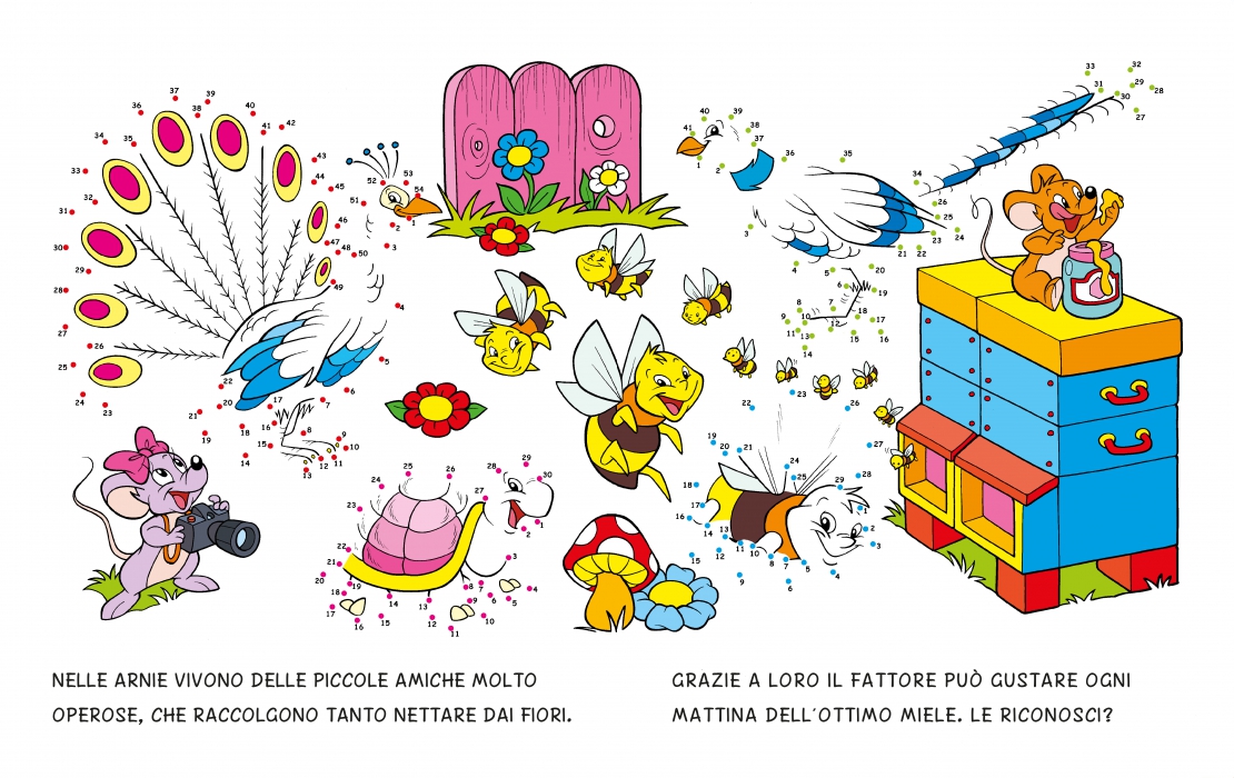 figure nascoste, unendo i puntini e colorando le figure.